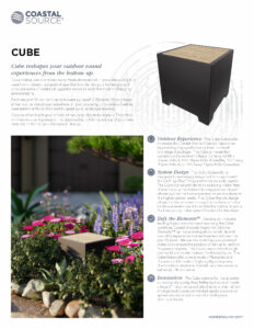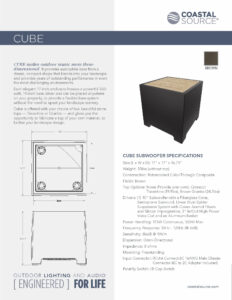 The CUBE Subwoofer enhances the Coastal Source Outdoor Experience by providing high-performance bass (low-frequency) in a small and elegant package.